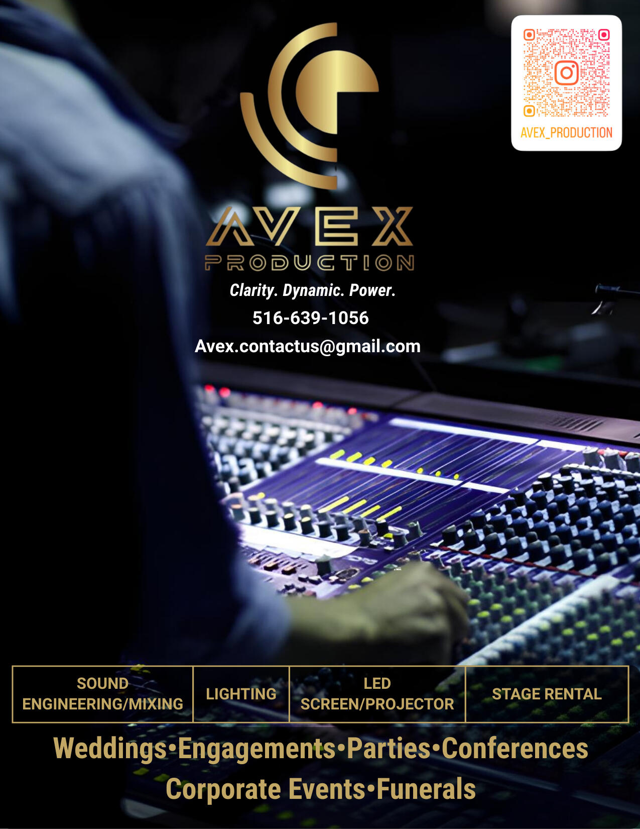 At Avex Production, we specialize in delivering high-quality sound engineering, lighting design, LED screens, and stage rentals for events of all kinds. From weddings and engagements to corporate conferences and live performances, our team brings clarity, creativity, and power to every production. With cutting-edge equipment and a passion for precision, we turn your vision into an unforgettable experience.